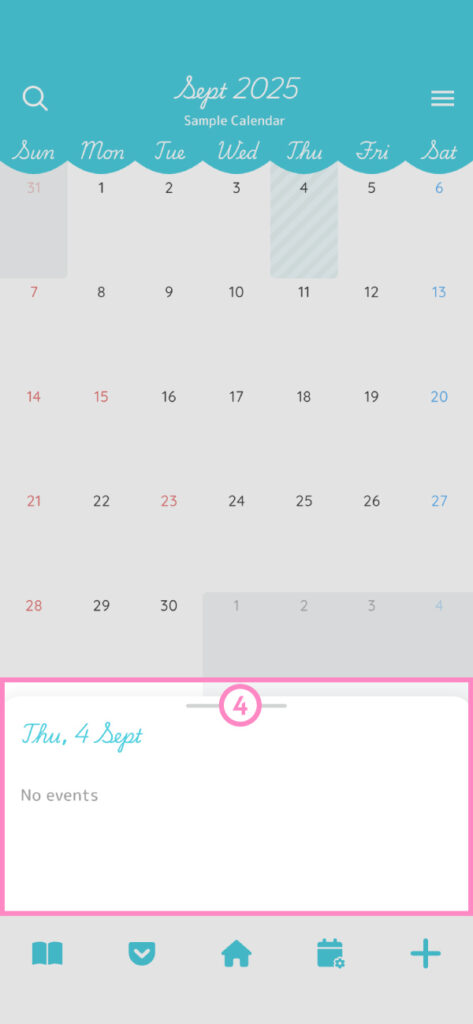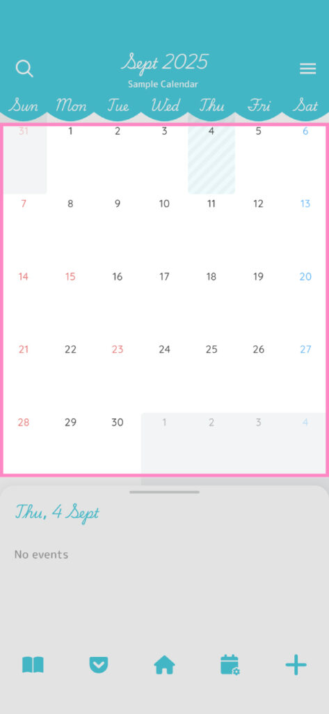 Bottom of the Calendar Screen