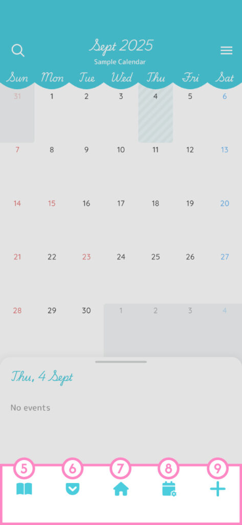 (7) When a date other than today is selected, tap this button to return to Today.