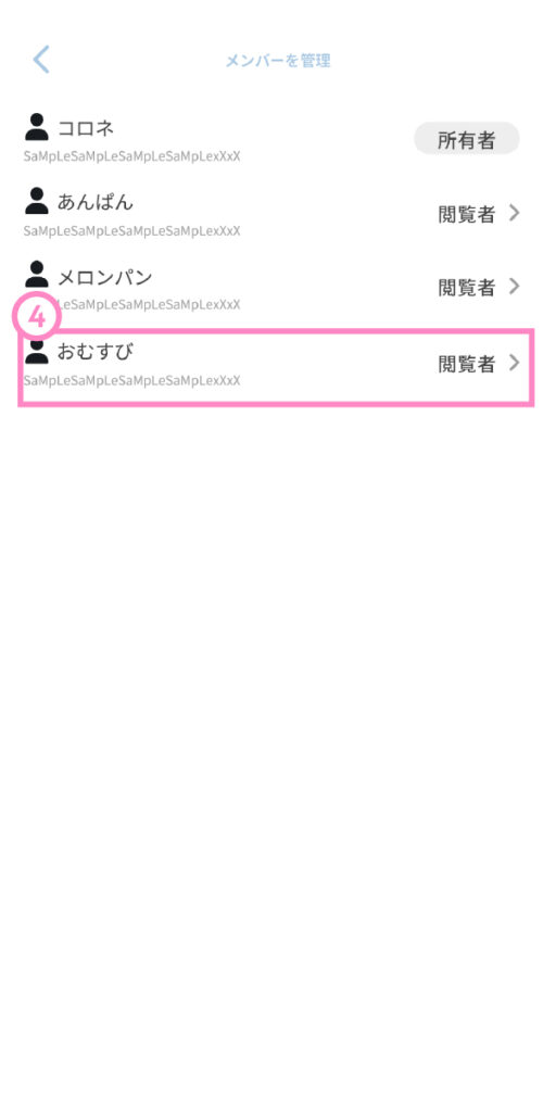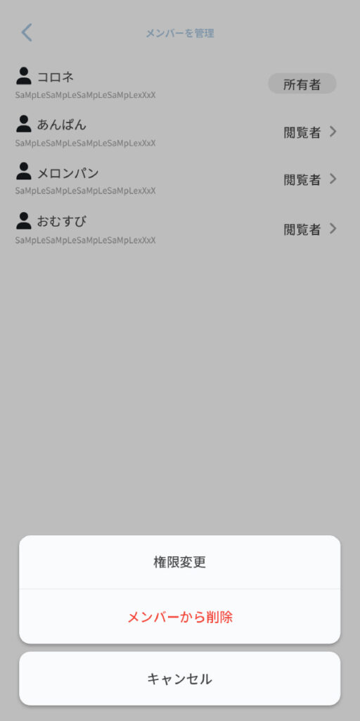 「権限変更」をタップし、任意の権限を選びます。各権限の違いについては「メンバー権限の違い」のページを参照ください。